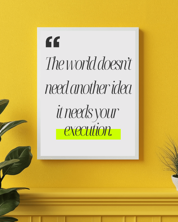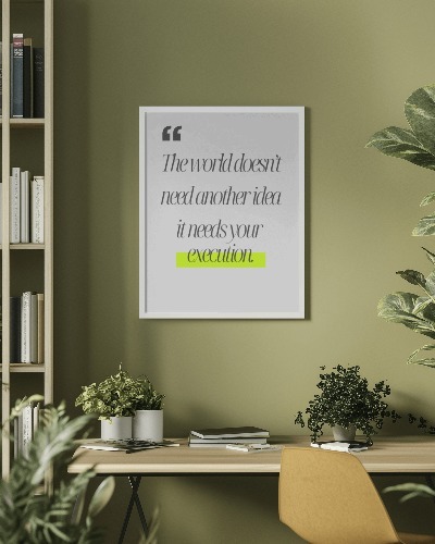 Charge your working capital with the powerful contemporary art motivation of the poster. Created for achievers, visionaries, and doers, this digital wall art reminds one that ideas are cheap and execution is everything. Cool typography coupled with sharp contrast: "execution" is neon-yellow brilliant and permits paramount emphasis within any work area, study room, or creation nook. Perfect for entrepreneurs, students, professionals, and creators being ready to stop dreaming and start doing. Download. Print. Conquer your day!